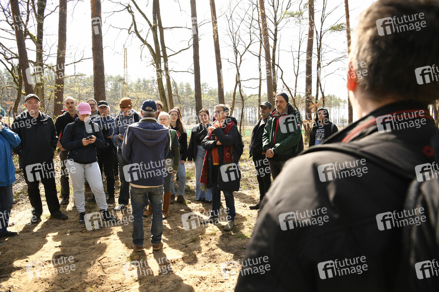 Tesla Takedown Demonstration gegen den Elektroautohersteller Tesla und dessen Leiter Elon Musk. Grünheide, 12.04.2025