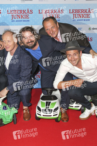 Simon Schwarz, Daniel Christensen, Thomas Kügel und Harry G bei der Premiere des Kinofilms 'Leberkäsjunkie' im Mathäser Filmpalast. München, 29.07.2019