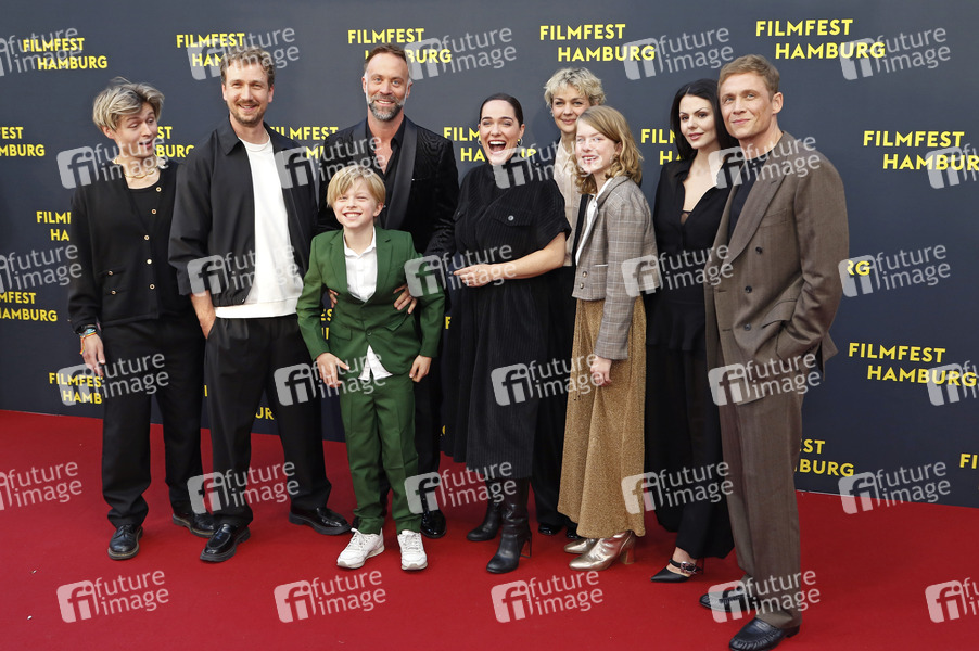 Tom Böttcher, Johannes Louis, Anton Landau, Erik Schmitt, Verena Altenberger, Luise Heyer, Luise Landau, Ruby O. Fee und Matthias Schweighöfer bei der Premiere des Kinofilms 'Das Leben der Wünsche' auf dem 33. Filmfest Hamburg 2025 im Cinemaxx Dammtor. Hamburg, 28.09.2025