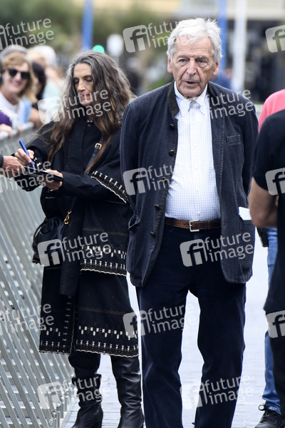Angela Molina, und Costa- Gavras nach dem Photocall zum Kinofilm 'Le dernier souffle / Last Breath' auf dem 72. Internationalen Filmfestival San Sebastian / Festival Internacional de Cine de San Sebastián auf der Kursaal Terasse. San Sebastian,
