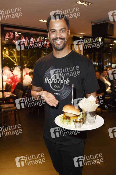 Patrice Bouedibela kellnert im Rahmen der Pinktober Charity-Aktion zugunsten der Organisation Brustkrebs Deutschland e.V. im Hard Rock Cafe. Berlin, 27.10.2019
