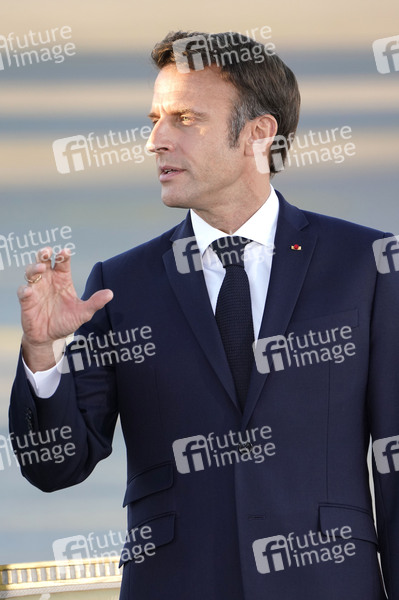 Emmanuel Macron bei der Ankunft zum G7-Gipfel am Flughafen München Franz Josef Strauß. München, 25.06.2022