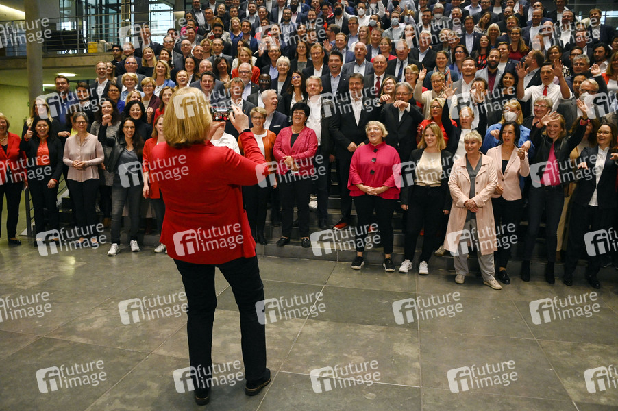 Bärbel Bas u.a. beim Bildtermin mit der neuen SPD Fraktion auf der Fraktionsebene im Reichstagsgebäude. Berlin, 29.09.2021
