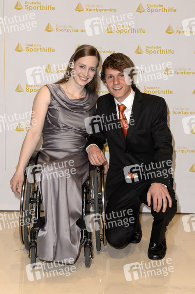 Anna Schaffelhuber mit Bruder Josef Schaffelhuber bei der Verleihung der Goldenen Sportpyramide 2014 im Hotel Adlon. Berlin, 16.05.2014