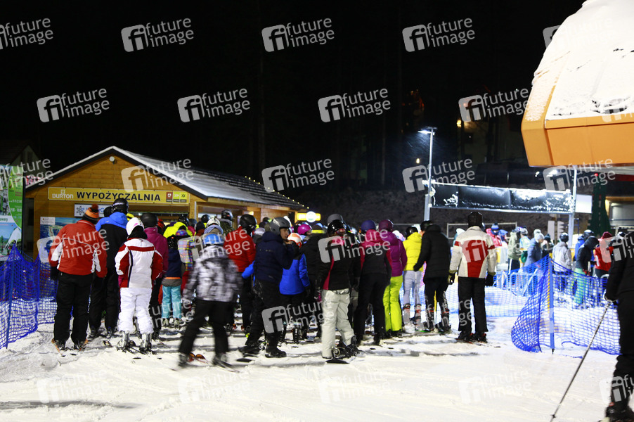 Großer Menschenandrang bis zum Abend auf den Skipisten im niederschlesischen Karpacz (Krummhübel), einen Tag vor dem harten Lockdown in Polen (28.12.2020-17.01.2021). Karpacz, 27.12.2020