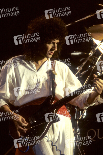 Brian May von Queen live bei einem Konzert der 'Works'-Tour in der Wembley Arena. London, 07.09.1984