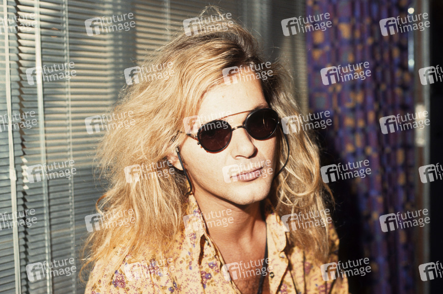 Rikki Rockett von Poison bei einem Photoshooting in einem Hotel. London, 18.05.1991