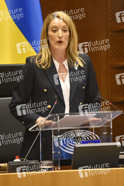 Rede, Politik, Europaparlament, EU-Parlament, EP, Parlament der Europäischen Union, Parlamentum Europaeum, MdEP, Mitglied des Europäischen Parlaments, Krieg, Angriffskrieg, Einmarsch, Europapolitik, internationale Krise, internationale Politik, internationales Recht, Konflikt, Krieg, Kriegsbeginn, Kriegsverbrechen, Krise, Militäroffensive, Militärschlag, Sanktionen, Solidarität, Solidaritätsbekundung, Ukraine, Ukrainekonflikt, Ukraine-Konflikt, Ukrainekrise, Ukraine-Russland-Krise, Politikerin, Malta, Partit Nazzjonalista, EU-Parlamentspräsidentin, Präsidentin des EU-Parlaments