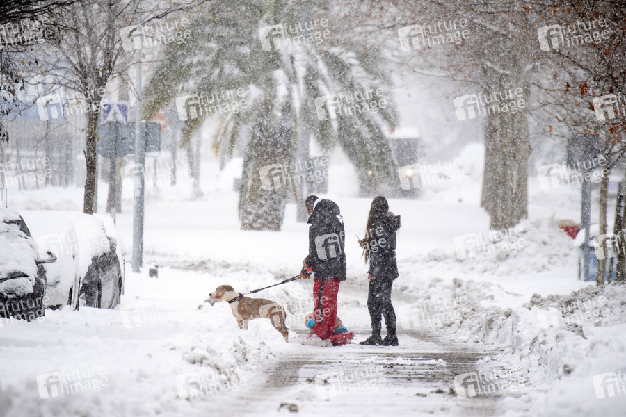 Das Sturmtief Filomena sorgt in der Region Madrid und anderen Teilen Spaniens mit starken Schneefällen für Chaos. Die Hauptstadt Madrid wurde durch historisch heftigen Schneefall lahmgelegt. Seit 50 Jahren hat es nicht so geschneit. Der Verkehr ist in weiten Teilen des Landes zusammengebrochen. Torrejón de Ardoz, 09.01.2021
