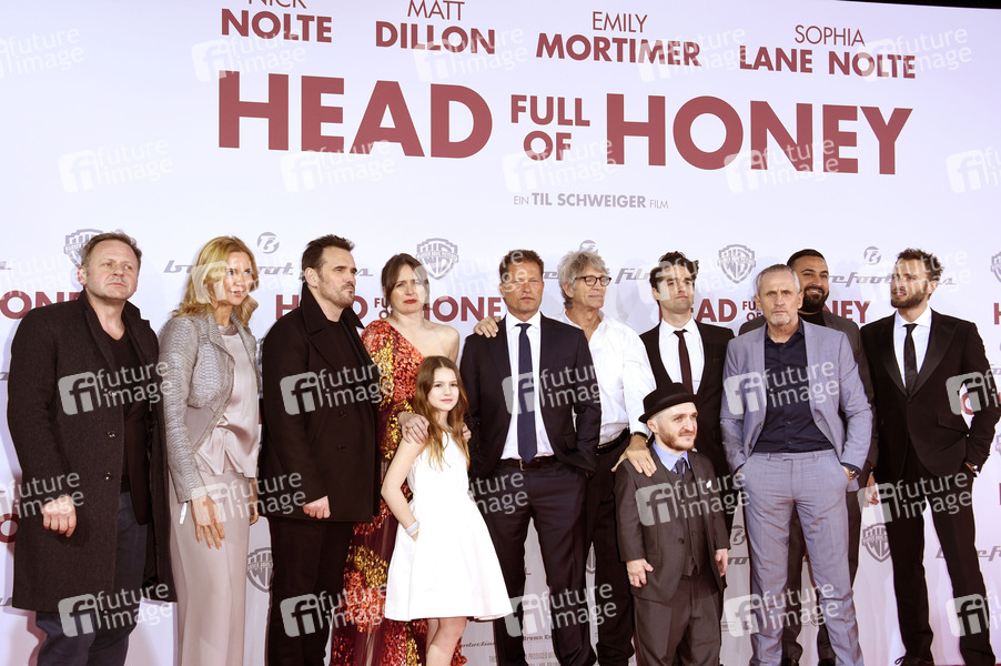 Samuel Finzi, Veronica Ferres, Matt Dillon, Emily Mortimer, May Rose Nivola, Til Schweiger, Eric Roberts, Leigh Gill, Max Befort, Tim Wilde, Sami Nasser und Luca Ribezzo bei der Europapremiere des Kinofilms 'Head Full of Honey' im Zoo Palast. Berlin, 12.03.2019