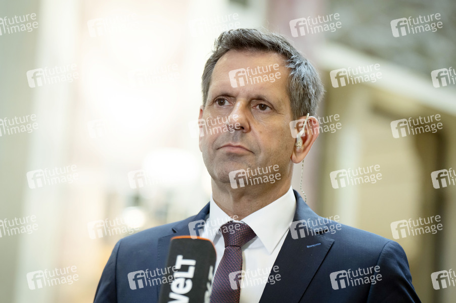 Olaf Lies beim Pressestatement am Rande der 1054. Sitzung des Bundesrates im Plenarsaal des Preußischen Herrenhauses. Berlin, 23.05.2025