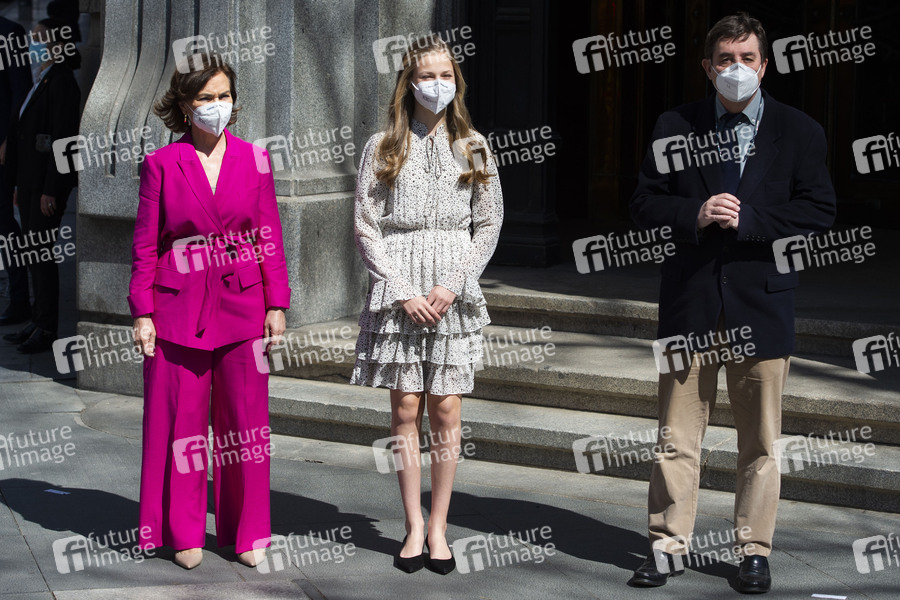 Carmen Calvo, Prinzessin Leonor und Luis Garcia Montero bei der Feier zum 30. Jahrestag der Gründung der Organisation zur Förderung und Verbreitung der spanischen Sprache im Instituto Cervantes. Madrid, 24.03.2021