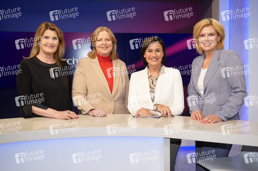 Tina Hassel, Bärbel Bas, Sandra Maischberger und Julia Klöckner in der ARD-Talkshow 'maischberger' im Studio Berlin Adlershof. Berlin, 10.04.2024
