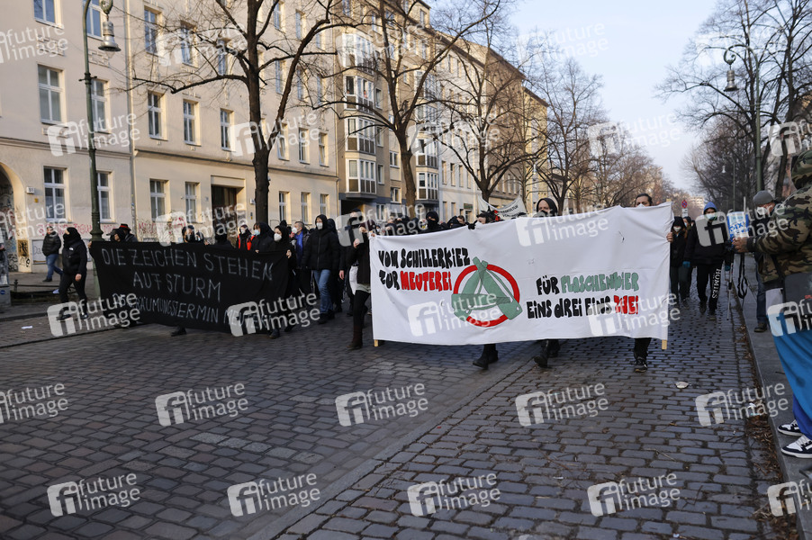 Gegen 8.30 Uhr wurde die Kiezkneipe 'Meuterei' in Kreuzberg von der Polizei geräumt. Linke Gruppen haben für Donnerstag fünf Demos, davon drei mit dem Zielort vor der besetzten Kneipe, angekündigt. Seit Mittwochnachmittag hat die Polizei deshalb eine Sperrzone um die Kneipe gezogen. 1100 Einsatzkräfte sicherten die Räumung der Kiezkneipe ab. Berlin, 25.03.2021