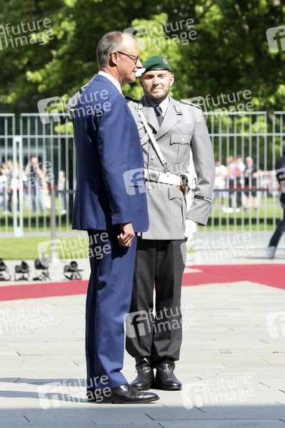 Friedrich Merz beim Empfang der dänischen Ministerpräsidentin mit militärischen Ehren zu einem gemeinsamen Gespräch mit anschließendem Pressestatement im Bundeskanzleramt. Berlin, 11.06.2025