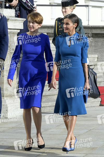 Elke Büdenbender und Königin Letizia von Spanien bei der Begrüßung des spanischen Königspaares mit militärischen Ehren im Schloss Bellevue. Berlin, 17.10.2022