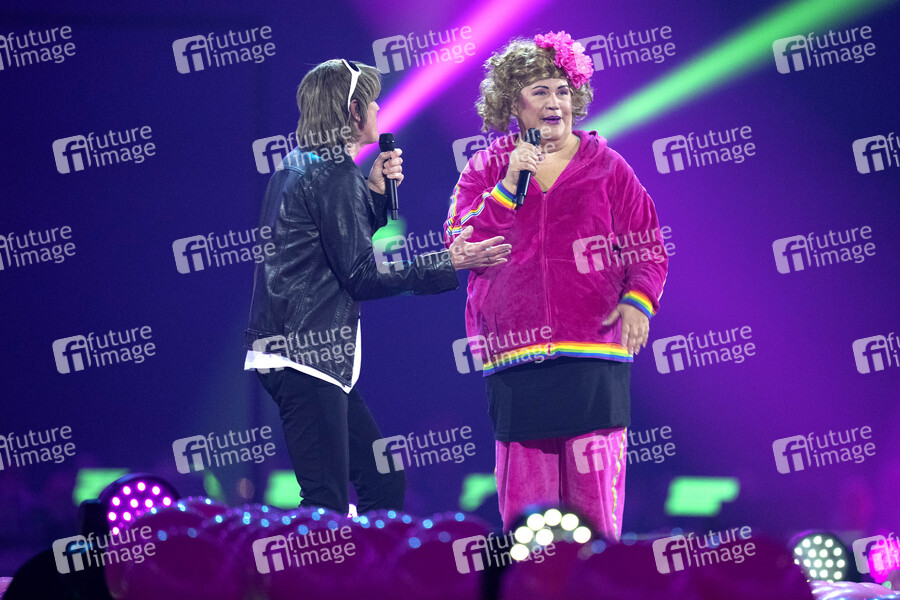 Mickie Krause und Cindy aus Marzahn in der TV-Show 'Schlagerbooom 2025 - Alles funkelt! Alles glitzert!' in der Westfalenhalle. Dortmund, 18.10.2025