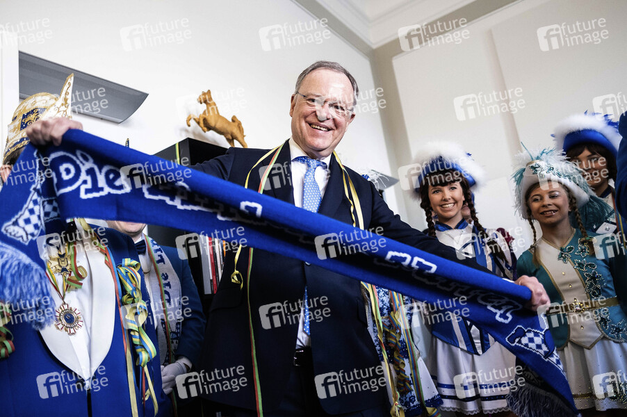 Stephan Weil bei einem Besuch der Lindener Narren zur Rosenmontagsparty in der Staatskanzlei. Hannover, 04.03.2019