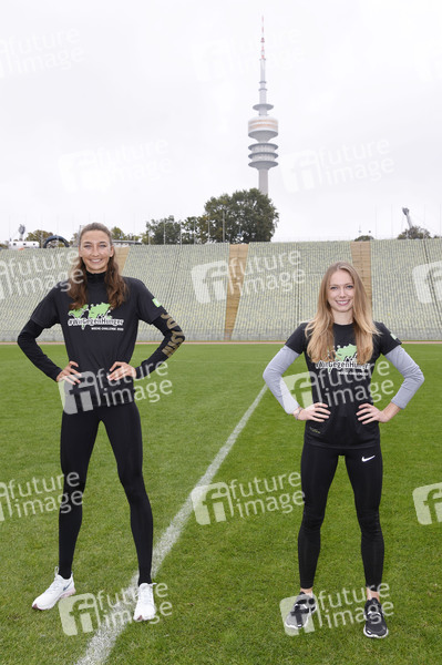 Christina Hering und Katharina Trost beim Fototermin zur sportichen '#WocheChallenge' im Olympiastation München. Unter dem Motto 'Wir können was bewegen!' ruft die Welthungerhilfe zu dieser Challenge auf und bittet um Spenden für eine Welt ohne Hunger. München, 13.10.2020