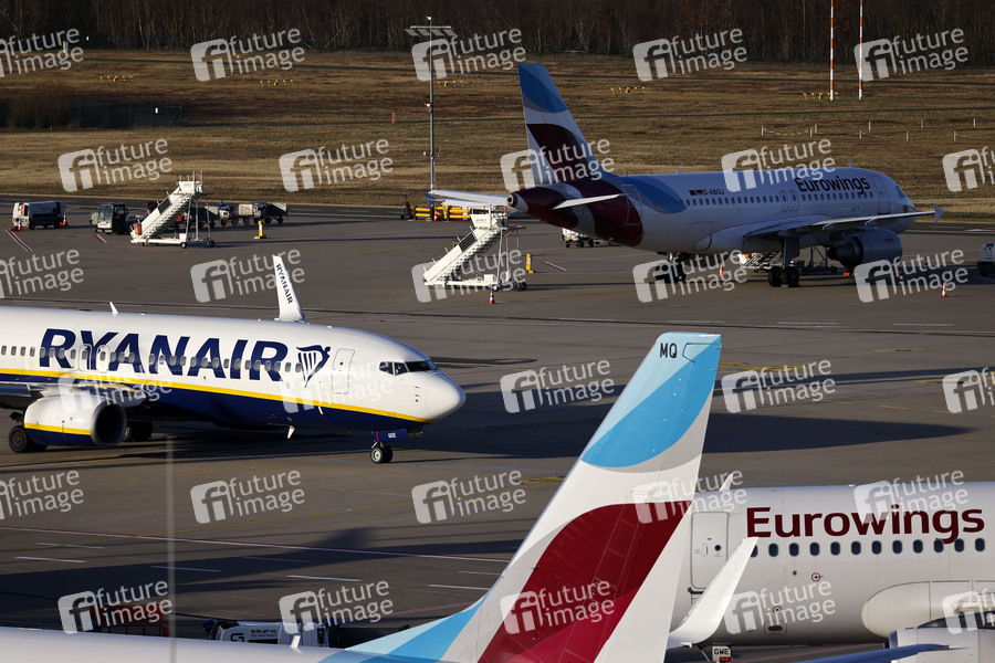 Flieger von Ryanair und Eurowings am Köln Bonn Airport. Der Flughafen Köln/Bonn 'Konrad Adenauer' ist ein internationaler Verkehrsflughafen in Köln. (Themenbild, Symbolbild) Köln, 23.02.2022