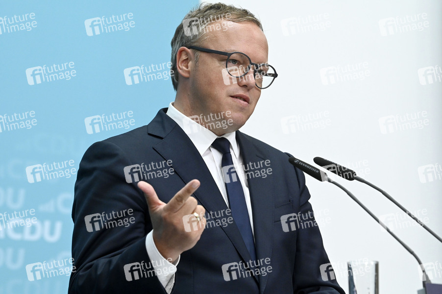 Mario Voigt bei der Pressekonferenz der CDU nach den Landtagswahlen in Thüringen und Sachsen im Konrad-Adenauer-Haus. Berlin, 02.09.2024