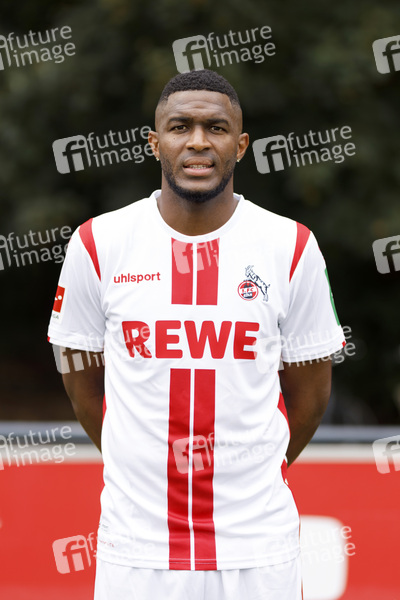 Anthony Modeste beim Fototermin im Rahmen des Media Day des 1. FC Köln mit den neuen Trikots in der Saison 2020/2021 am Geißbockheim. Köln, 14.08.2020