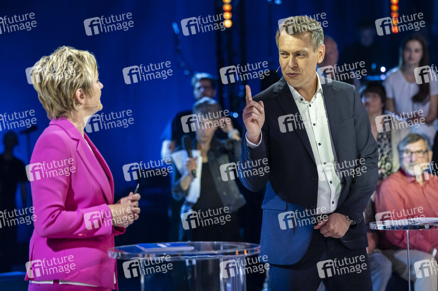 Prominenz, Talk, Gespräch, Talkrunde, Gesprächsrunde, TV, Fernsehen, Entertainment, Unterhaltung, Kultur, Wahlkampf, Europawahl, Europäische Union, EU, Europäisches Parlament, Europaparlament, Kandidat, Das Erste, ARD-Wahlarena, Moderatorin, Moderator