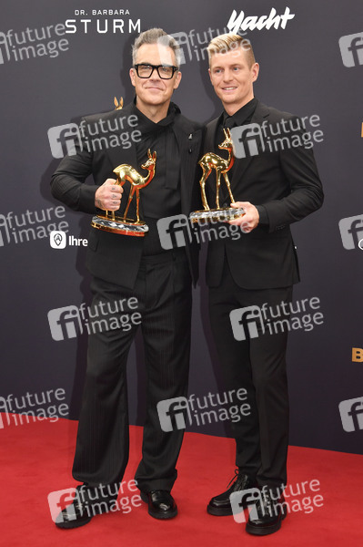 Robbie Williams und Toni Kroos bei der 76. Bambi-Verleihung 2024 in den Bavaria Filmstudios. München, 07.11.2024