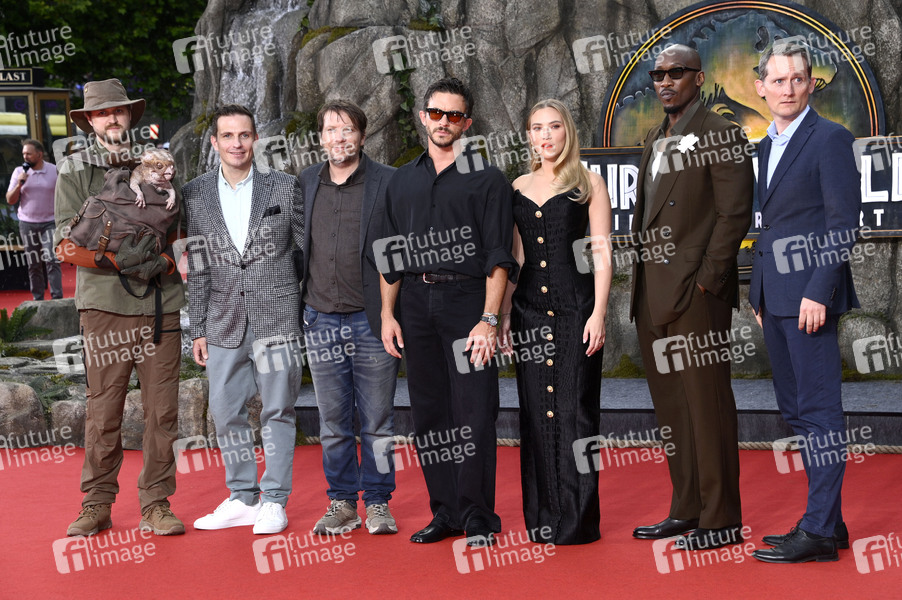 Gareth Edwards, Jonathan Bailey, Scarlett Johansson, Mahershala Ali und Team bei der Premiere des Kinofilms 'Jurassic World: Rebirth / Jurassic World: Die Wiedergeburt' im Zoo Palast. Berlin, 18.06.2025