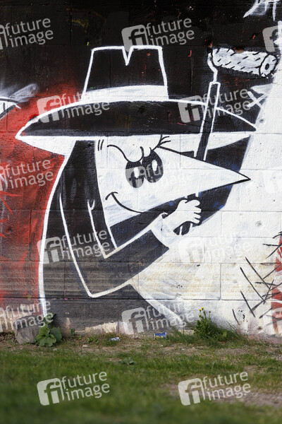 Ein Grafitti mit Agenten des Comics 'Spion & Spion' an einer Brücke in Deutz. Köln, 01.05.2020