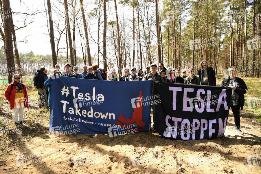 Tesla Takedown Demonstration gegen den Elektroautohersteller Tesla und dessen Leiter Elon Musk. Grünheide, 12.04.2025