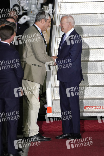 Markus Söder und Joe Biden bei der Ankunft von US-Präsident Biden zum G7-Gipfel am Flughafen München Franz Josef Strauß. München, 25.06.2022