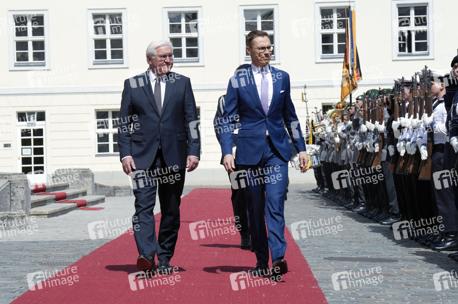 Frank-Walter Steinmeier und Alexander Stubb beim Empfang des Präsidenten der Republik Finnland mit militärischen Ehren im Schloss Bellevue. Berlin, 08.05.2024