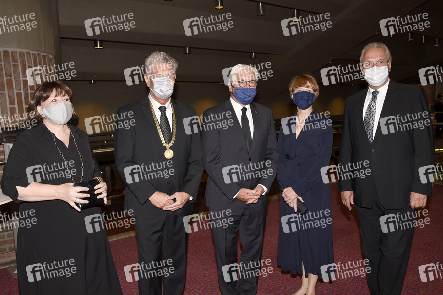 Petra Reiter, Dieter Reiter, Frank-Walter Steinmeier, Elke Büdenbender und Joachim Herrmann bei der Trauerfeier für den verstorbenen Münchner Alt-OB und Ehrenbürger Dr. Hans-Jochen Vogel in der Philharmonie des Gasteig. München, 03.08.2020