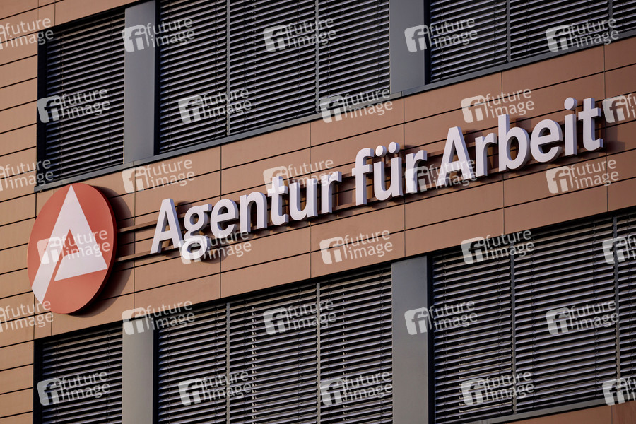 Arge-Logo an der Agentur für Arbeit in Ossendorf. Die Corona-Krise lässt die Zahl der Arbeitslosen weiter steigen, während noch ein vereinfachter Antrag für die Beantragung von Grundsicherungsleistungen ohne Vermögensprüfung gilt. Köln; 04.08.2020