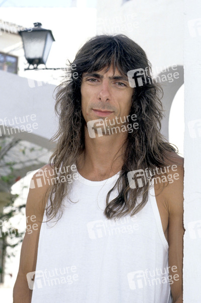 Scott Travis von Judas Priest bei einem Photoshooting in einer Villa. Marbella, 11.07.1990