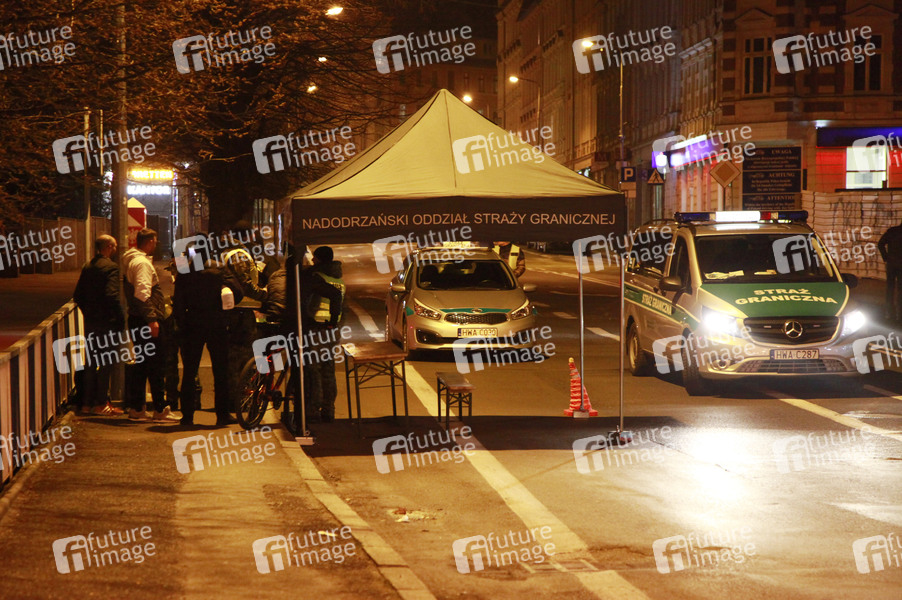 Um Mitternacht schließt Polen wegen der Corona-Krise die Grenze für Ausländer an der Stadtbrücke zwischen Görlitz und Zgorzelec. Görlitz, 15.03.2020