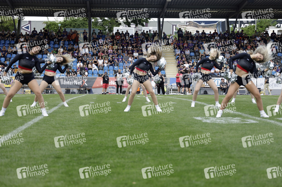 Cologne Centurions Cheerleaders beim American Football-Spiel Frankfurt Galaxy gegen Cologne Centurions in der PSD Bank Arena Frankfurt. Frankfurt am Main, 13.07.2024