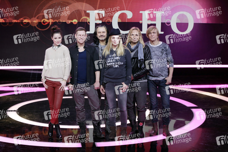 Lena, Helene Fischer, Peter Plate und Anna Loos mit Silly beim Fototermin zum ECHO 2013 auf der ECHO-Bühne in der Halle 20 der Messe Berlin. Berlin, 20.03.2013