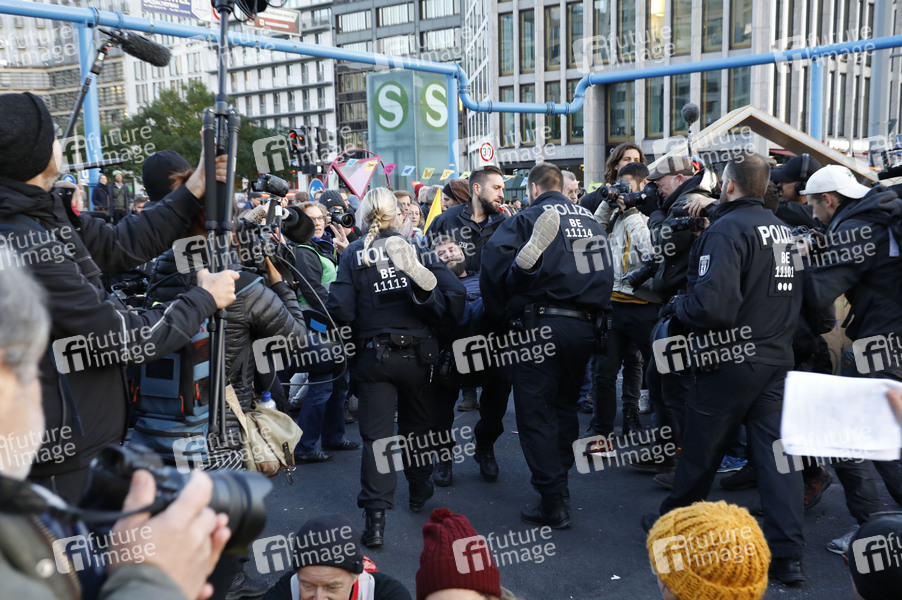 Aktivisten der Klimabewegung 'Extinction Rebellion' blockieren den Potsdamer Platz, die Polizei beginnt mit der Räumung. Berlin, 07.10.2019