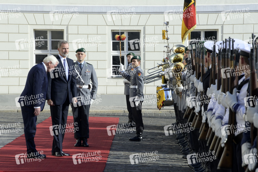 Frank-Walter Steinmeier und König Felipe VI. von Spanien bei der Begrüßung des spanischen Königspaares mit militärischen Ehren im Schloss Bellevue. Berlin, 17.10.2022