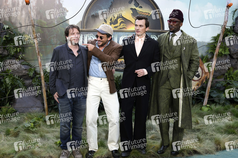 Gareth Edwards, Jonathan Bailey, Rupert Friend und Mahershala Ali bei der Weltpremiere des Kinofilms 'Jurassic World: Rebirth / Jurassic World: Die Wiedergeburt' im Odeon Luxe Leicester Square, London, 17.06.2025