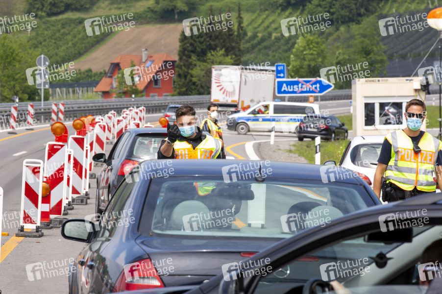 Kontrollen beim Grenzverkehr nach der Lockerung der Grenze Österreich - Deutschland. Lindau, 16.05.2020