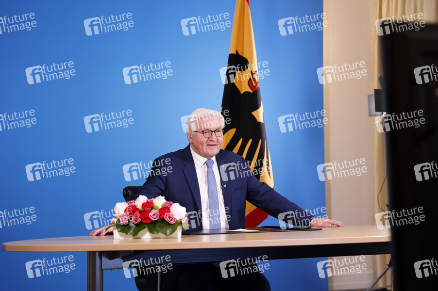 Frank-Walter Steinmeier bei der Vorstellung eines Kurzfilms über die Villa Hammerschmidt in Bonn und anschließendem Videogespräch mit der Bonner Oberbürgermeisterin Katja Dörner und dem Präsidenten der Stiftung Haus der Geschichte, Hans Walter Hütter, im Schloss Bellevue. Berlin, 01.06.2021