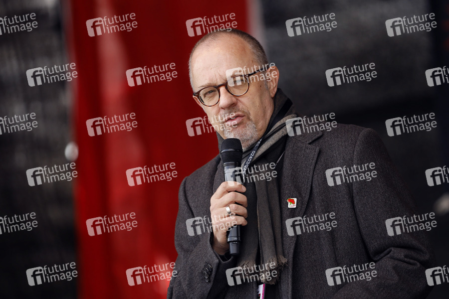 Tom Hegermann bei der Kundgebung des NRW DGB zum Ersten Mai im Autokino an der Merkur Arena. Düsseldorf, 01.05.2021