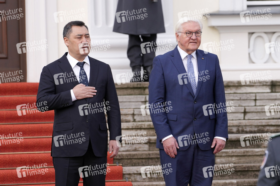 Sadyr Dschaparow und Frank-Walter Steinmeier beim Empfang des Präsidenten der Kirgisischen Republik mit militärischen Ehren und zum gemeinsamen Gespräch im Schloss Bellevue. Berlin, 26.11.2024
