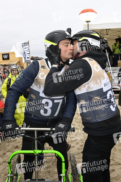 Jan Sosniok und Matthias Killing beim Baltic Lights 2022 Charity-Hunderennen zu Gunsten der Welthungerhilfe zwischen der Seebrücke Ahlbeck und der Seebrücke Heringsdorf. Heringsdorf, 05.03.2022