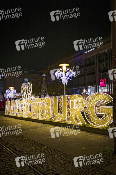 Lichterwelt-Winterwunderland vor dem City Carre - Die Licherwelt Magdeburg mit der umfangreichste Weihnachts- und Winterbeleuchtung in Mitteldeutschland verteilt über die ganze Stadt. Magdeburg, 22.11.2022