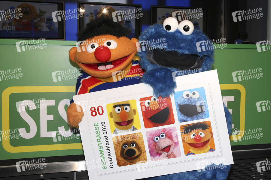 Ernie und Krümelmonster bei der Präsentation der Deutsche Post Sonderbriefmarke 'Sesamstrasse' beim NDR am Rothenbaum. Hamburg, 02.03.2020