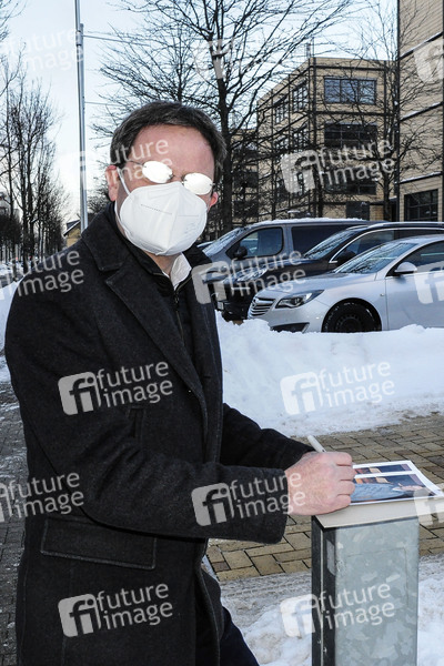 Markus Rex bei der Ankunft zur Aufzeichnung der MDR-Talkshow 'Riverboat' im Studio 3 der Media City Leipzig. Leipzig, 12.02.2021